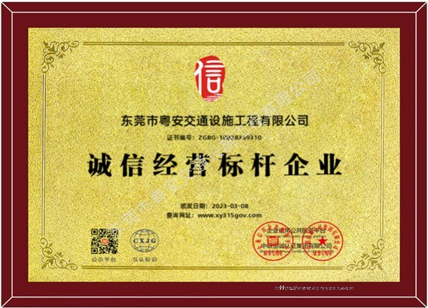 榮譽展示【誠信標(biāo)桿企業(yè)】